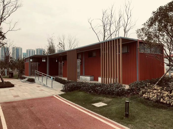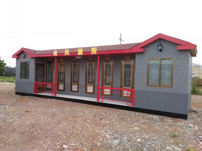 拼裝廁所;在廠里做好各個廁所部件,再到現(xiàn)場組裝在一齊,適合不易運輸?shù)拇笮蛶?。這座箱式廁所,女廁5個蹲位內(nèi)配工具間,男廁2個蹲位+2小便斗,第三衛(wèi)生間由殘疾馬桶、助力洗手盆和兒童馬桶、兒童洗手盆外加嬰兒臺等設(shè)施。廁所前后有窗,通風采光,前部走廊裝有屋檐,防雨防曬。此廁所位于公路綠道邊,整體大氣,功能齊全,造型美觀,是一道難得的靚麗景觀!