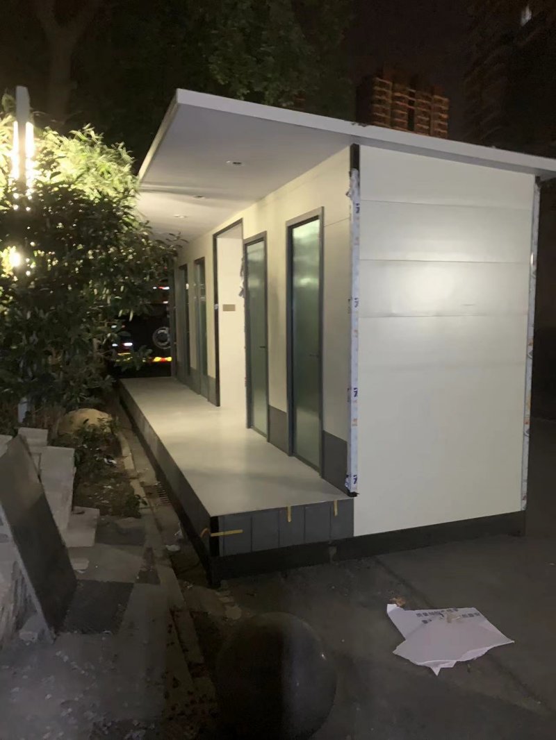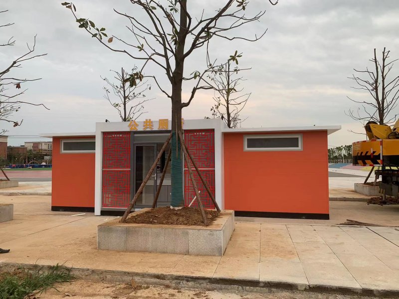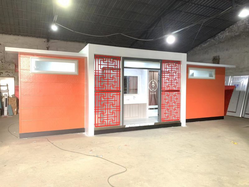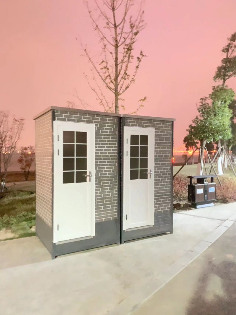 拼裝廁所;在廠里做好各個廁所部件,再到現(xiàn)場組裝在一齊,適合不易運輸?shù)拇笮蛶?。這座箱式廁所,女廁5個蹲位內(nèi)配工具間,男廁2個蹲位+2小便斗,第三衛(wèi)生間由殘疾馬桶、助力洗手盆和兒童馬桶、兒童洗手盆外加嬰兒臺等設(shè)施。廁所前后有窗,通風采光,前部走廊裝有屋檐,防雨防曬。此廁所位于公路綠道邊,整體大氣,功能齊全,造型美觀,是一道難得的靚麗景觀!